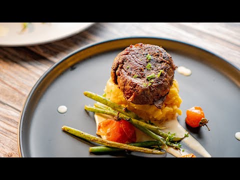 Steak au Poivre in a Pomegranate Port Wine Reduction.